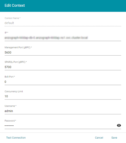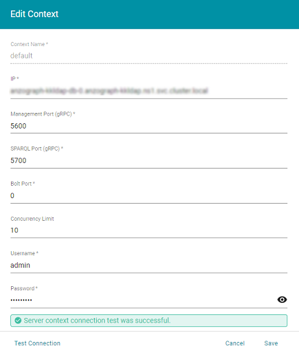 2. On the Edit Context screen, configure the connection to your Graph Lakehouse site deployment by supplying the values for the following required fields:
