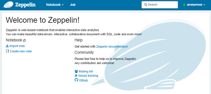 • If you excluded notebooks, the Zeppelin Welcome page is displayed: