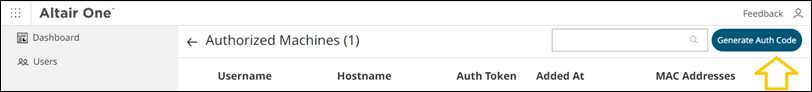 In the Authorized Machines page, click the Generate Auth Code button.