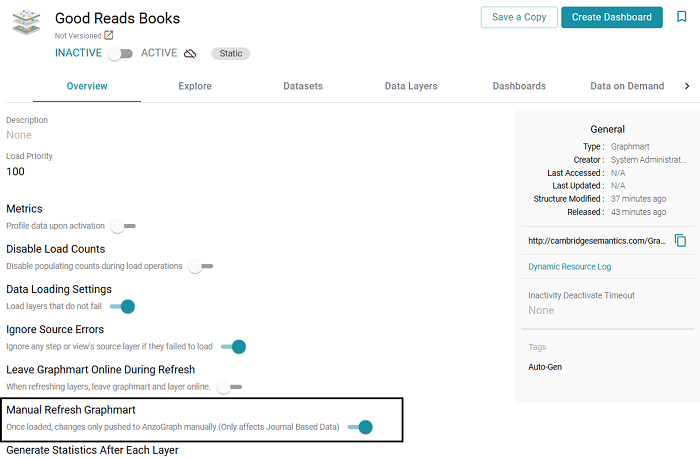 3. If Manual Refresh Graphmart is enabled, slide the slider to the left to disable it.
