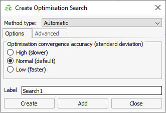- This setting controls the level of accuracy required by the search algorithm to converge. The three options, High (slower), Normal (default) and Low (faster) modify the conditions under which the search algorithm converges, and is also dependent on which optimisation Method type is chosen, since some techniques have a predetermined number of samples.