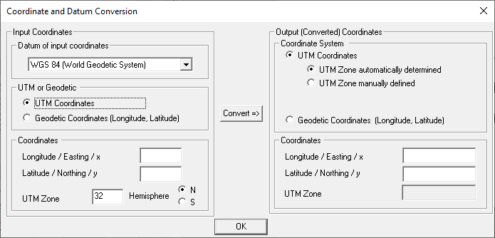 ProMan offers the possibility to convert coordinates and datum of single points or a list of points. This is useful if coordinates of measurement routes or site locations are to be converted to be used within ProMan. Click to specify the options.