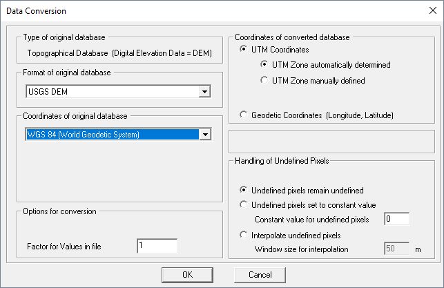 WinProp computes internally with UTM data, and therefore the database is converted to UTM coordinates during the computation. UTM zone is selected automatically based on the center pixel of the simulation area. Pixels and coordinates are then transformed to the UTM zone of the center pixel. After the simulation is completed, the data is transformed back to the original datum. In the case your required coordinate system is not listed, contact Altair support.