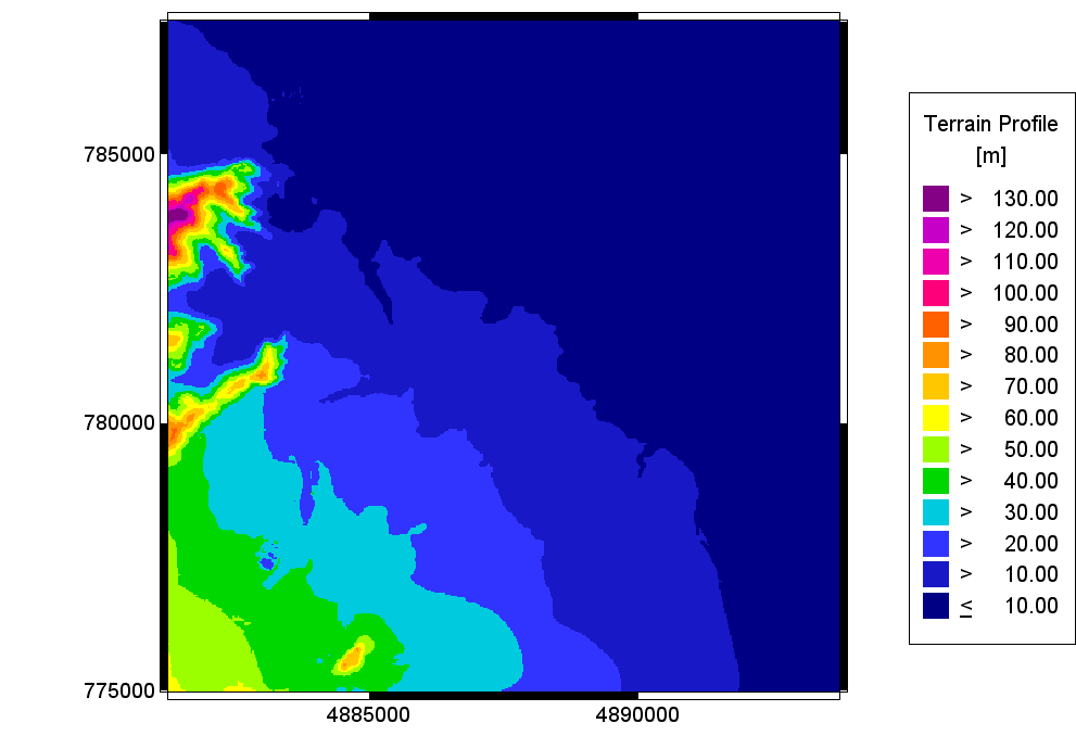 The consideration of topography might be of importance within urban environments depending on the terrain profile. The topographical databases are very often also called terrain databases and are based on pixel matrices. Each pixel defines the topographical height for a given location (the centre of the pixel). The finer the grid the more accurate the database. Today resolutions (grids) of 20 m and better are used.
