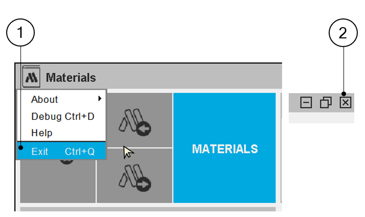 | Exit – Close “Materials” application | |