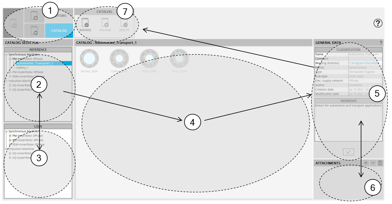 | Zone 4 | Visualization of all the motors (thumbnails) are stored in the selected catalog. |