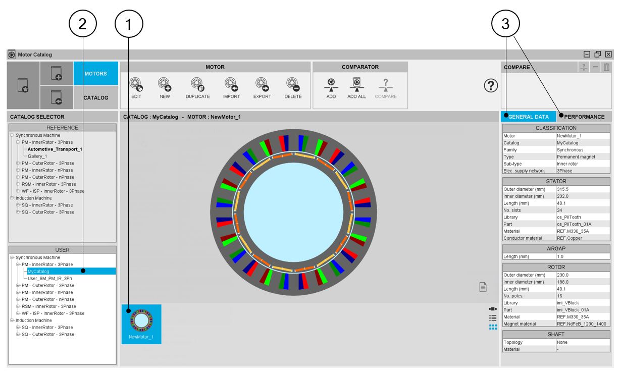 | The new motor “NewMotor1” (1) previously created is stored in the