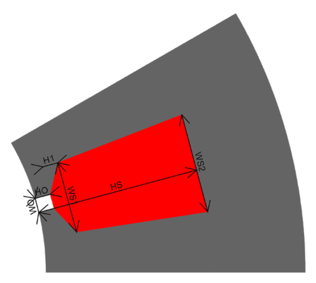 - Slot number or magnet number, driving the angular opening of the sector. This information is called structural data of the part. See the illustration of the sector shown below.