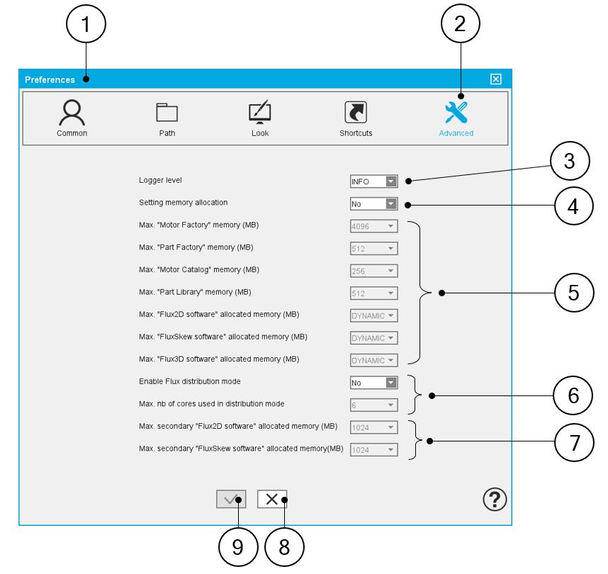 | 1 | Button to enable the Flux solver distribution mode. By default, this option is set to “No”. |