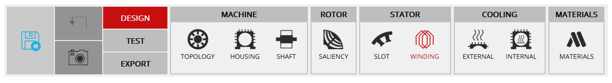 | 1 | Selection of the STATOR subset: WINDING panel (Click on the icon WINDING) |