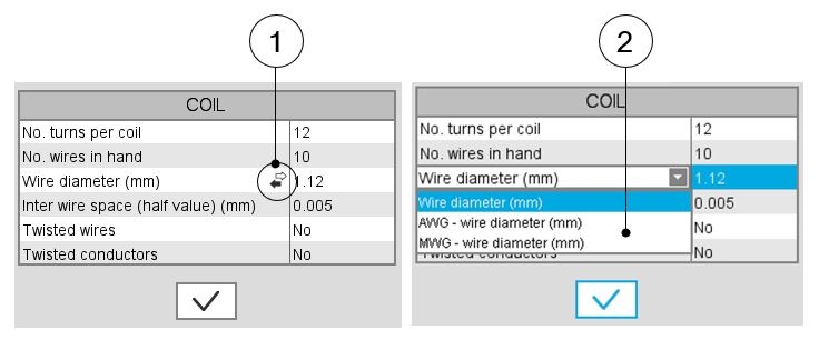 | 2 | Coil settings allows the user to describe the coil composition (turns, wires, dimensions) and how to fill the slot. |