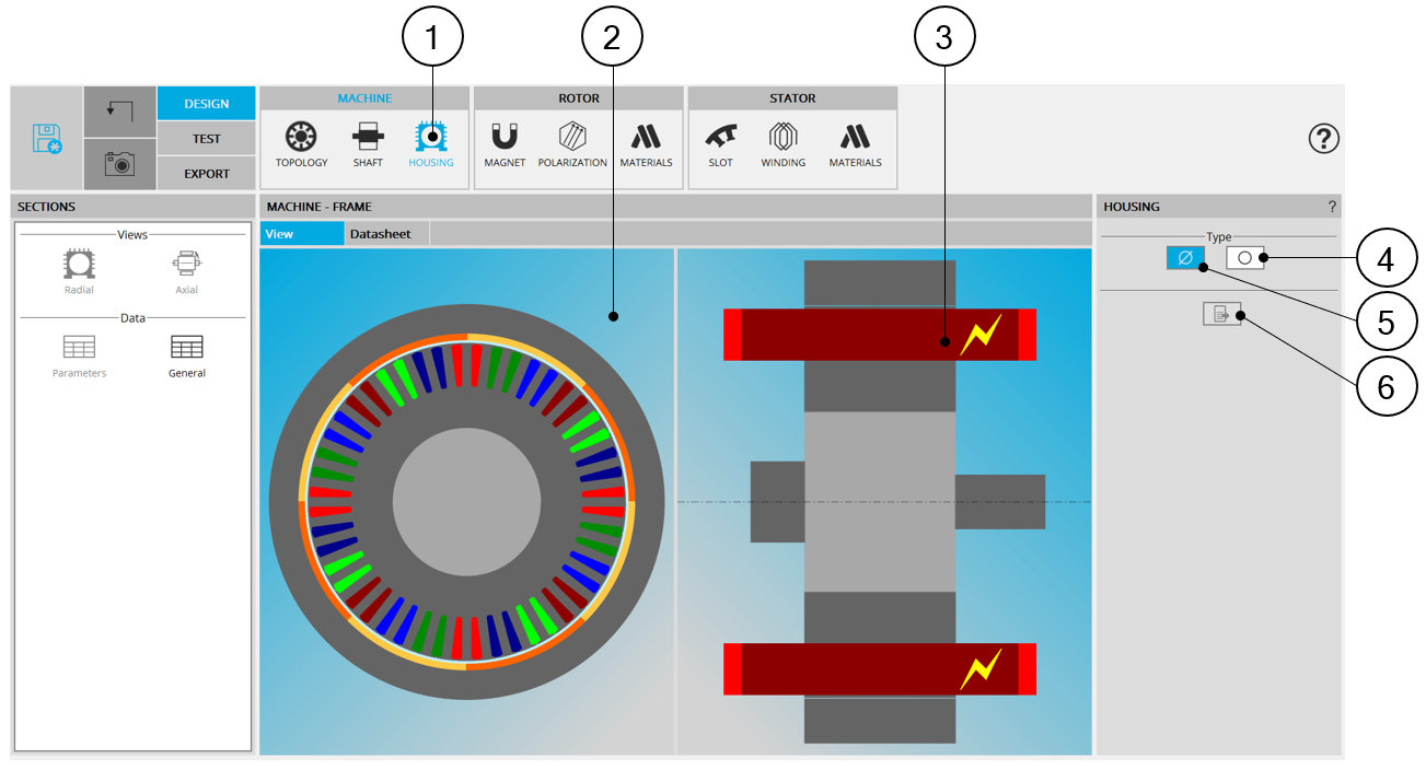 1 Selection of the MACHINE subset: HOUSING panel (Click on the icon HOUSING)