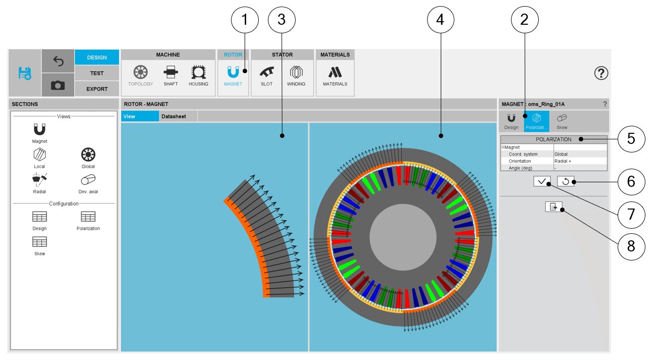 | 1 | Selection of the ROTOR subset: MAGNET panel |