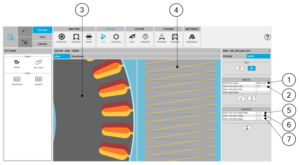 | 4 | Visualization of the rotor developed view to visualize the bar skew |