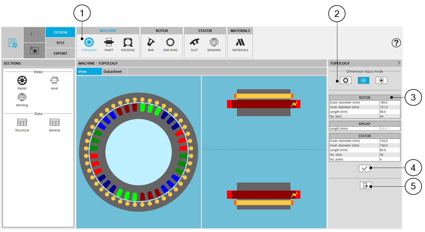 The first step of the design consists of defining structural data of the machine.