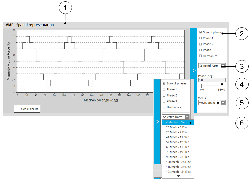 | 2 | Check the curves to display. Sum of phases M.M.F or M.M.F. provided by