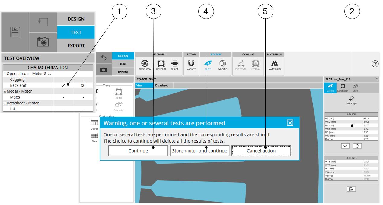 “ Store motor and continue ” allows the user to first store the current motor and then continue the design on the current motor.