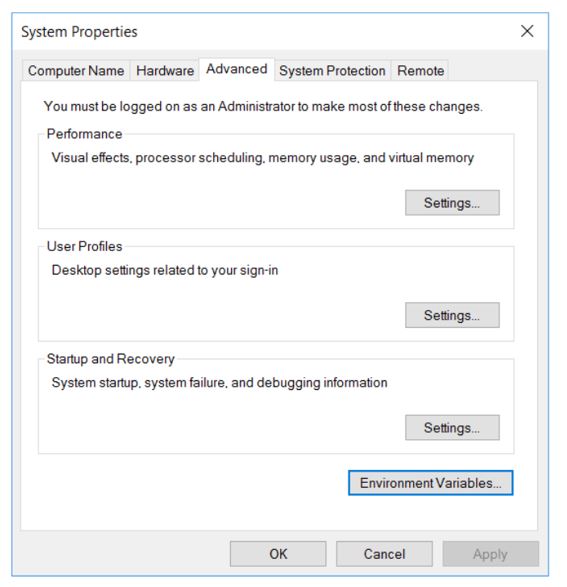 - Click the Windows Start menu and navigate to System Properties.Tip: In Windows 10, type "env" and then select Edit the System Environment Variables.