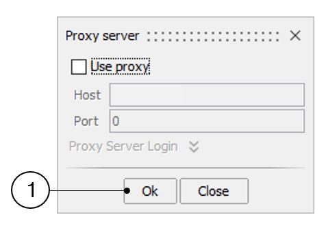 - Click on the OK button (Mark 1 - Figure 5 – Proxy Server Settings - Dialog box). The status will change to Activated when the license is validated, or you will receive an error message if unsuccessful.