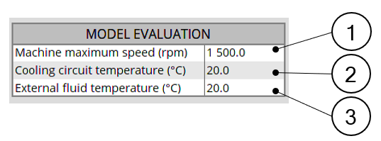 | 2 | Cooling circuit temperature. It is the temperature used in external cooling panel to evaluate the convection occurring in the cooling circuit. All the results shown for the cooling circuit in external cooling panel and datasheet use this temperature as the temperature of the coolant all along the circuit. This parameter only exists when a cooling circuit has been defined by the user in the MACHINE subset, HOUSING panel, CIRCUIT setting. Note: This
