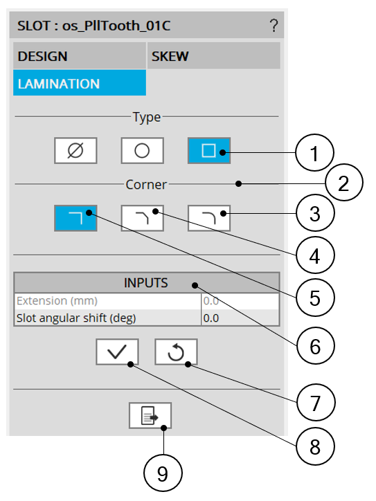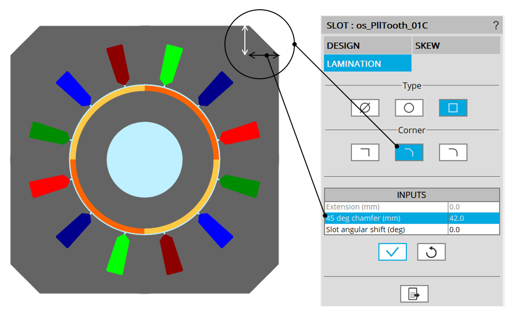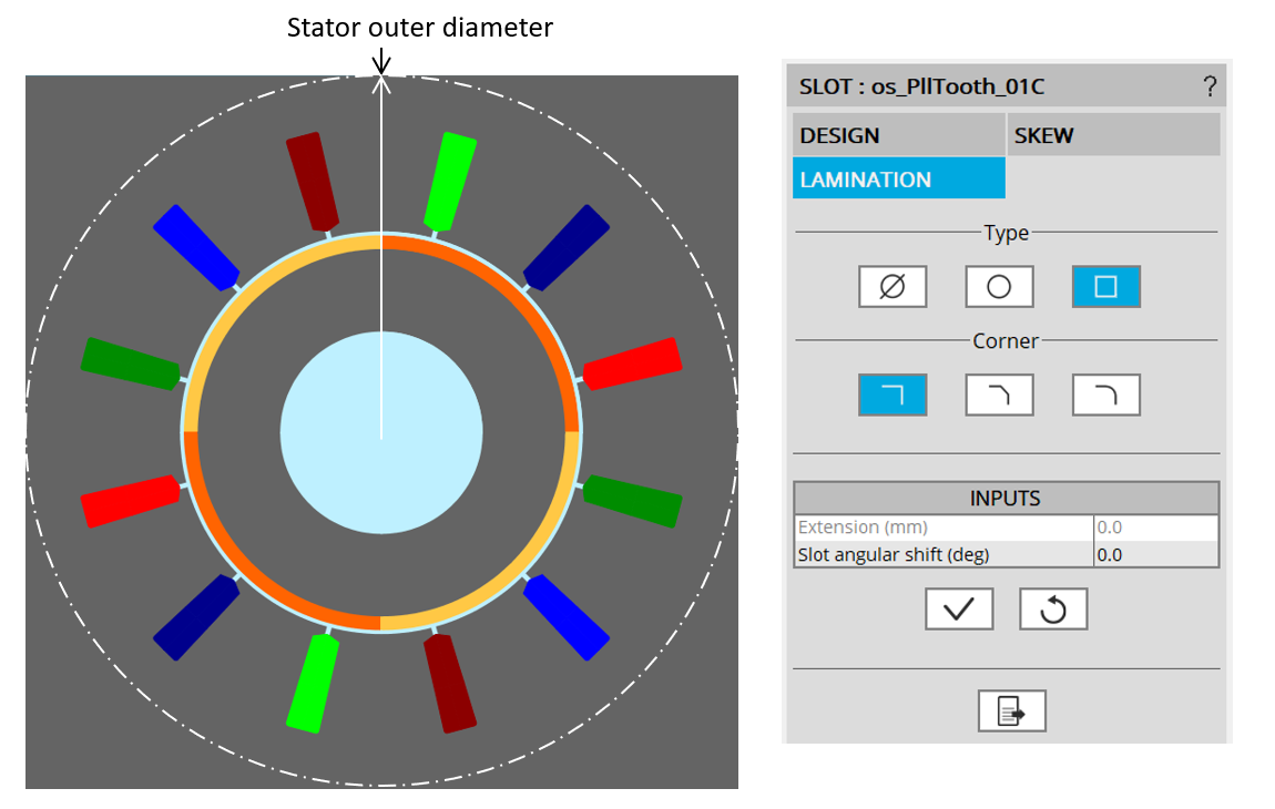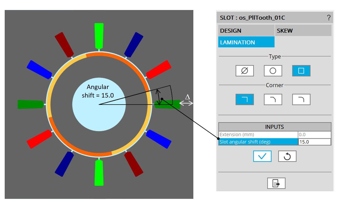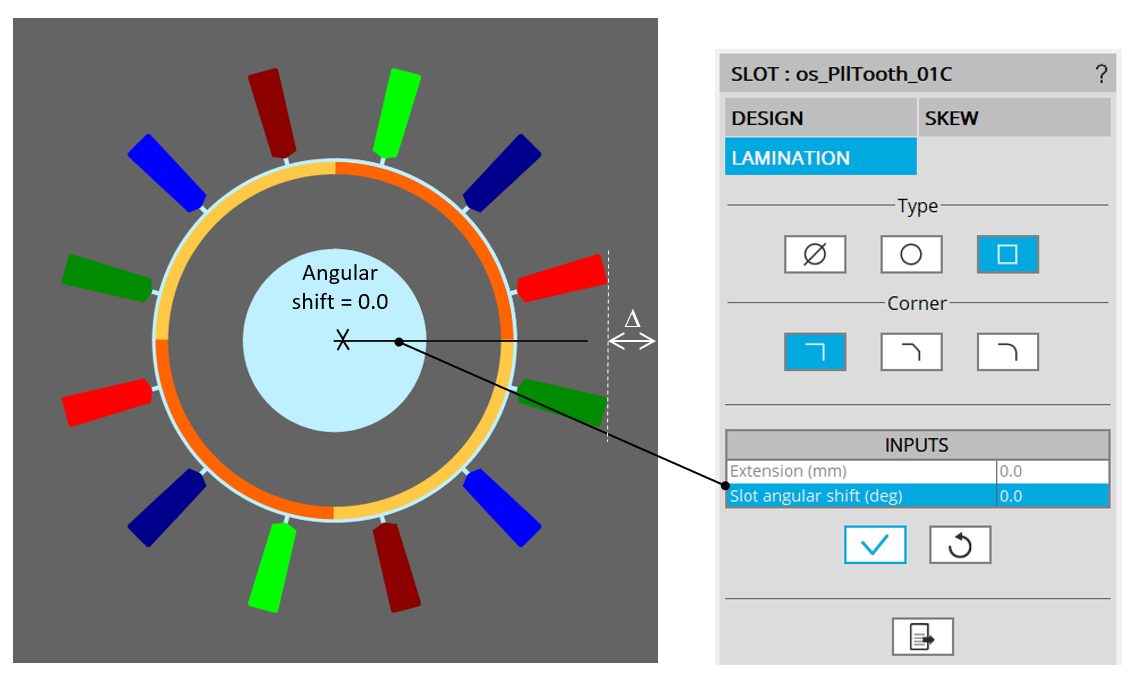 With a square shape lamination, it is possible to set a slot angular shift. It is advised to keep an angular shift lower than one slot pitch.