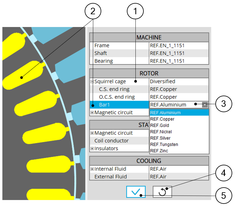| 3 | Expand the material list to choose a conductor material which gets assigned to the selected squirrel cage |