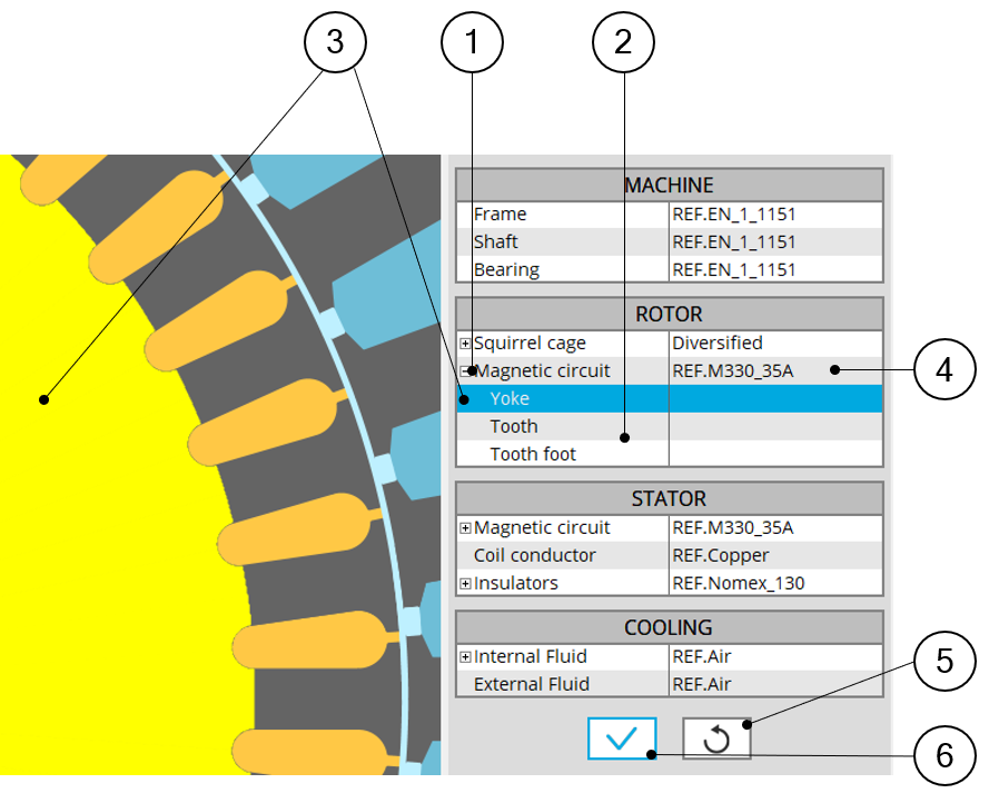Expand the material list to choose a material which gets assigned to the magnetic circuit.