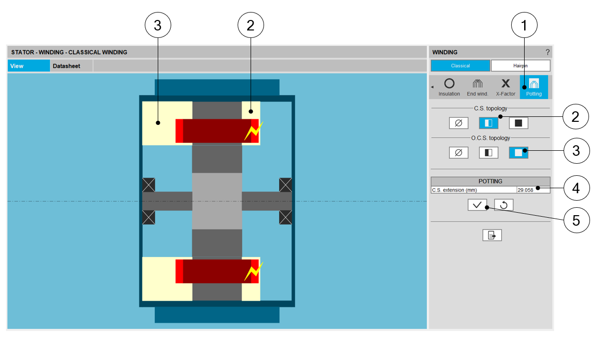Building the winding – Definition of the topology and dimensions of the potting around the end-winding