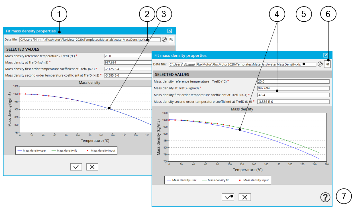 | 1 | Dialog box allowing the characterization of the density curve imported from an Excel file |