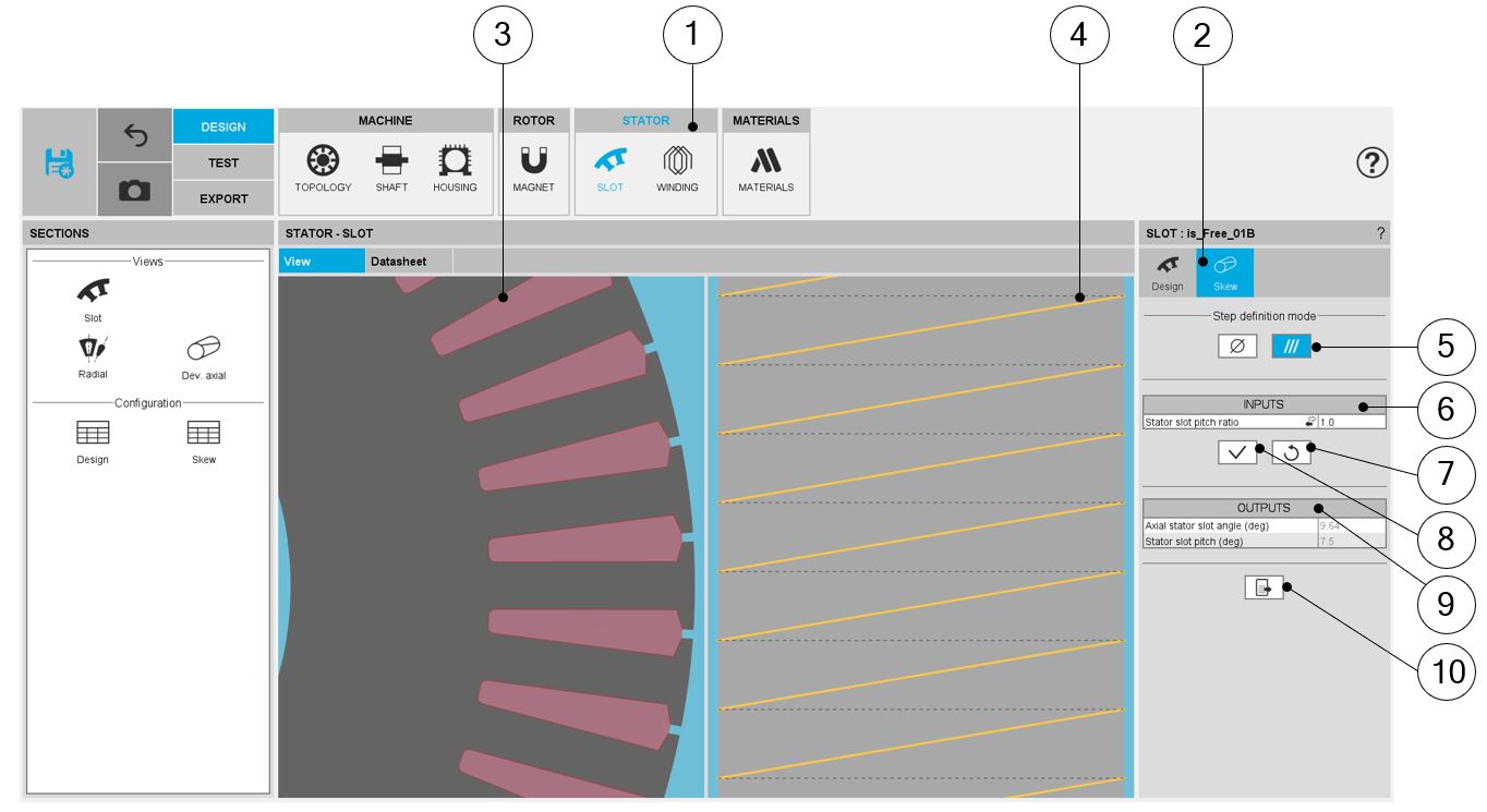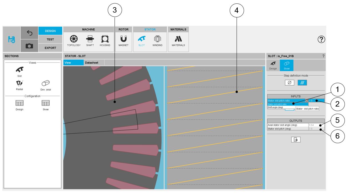 | 4 | Visualization of the stator developed view to visualize the slot skew |