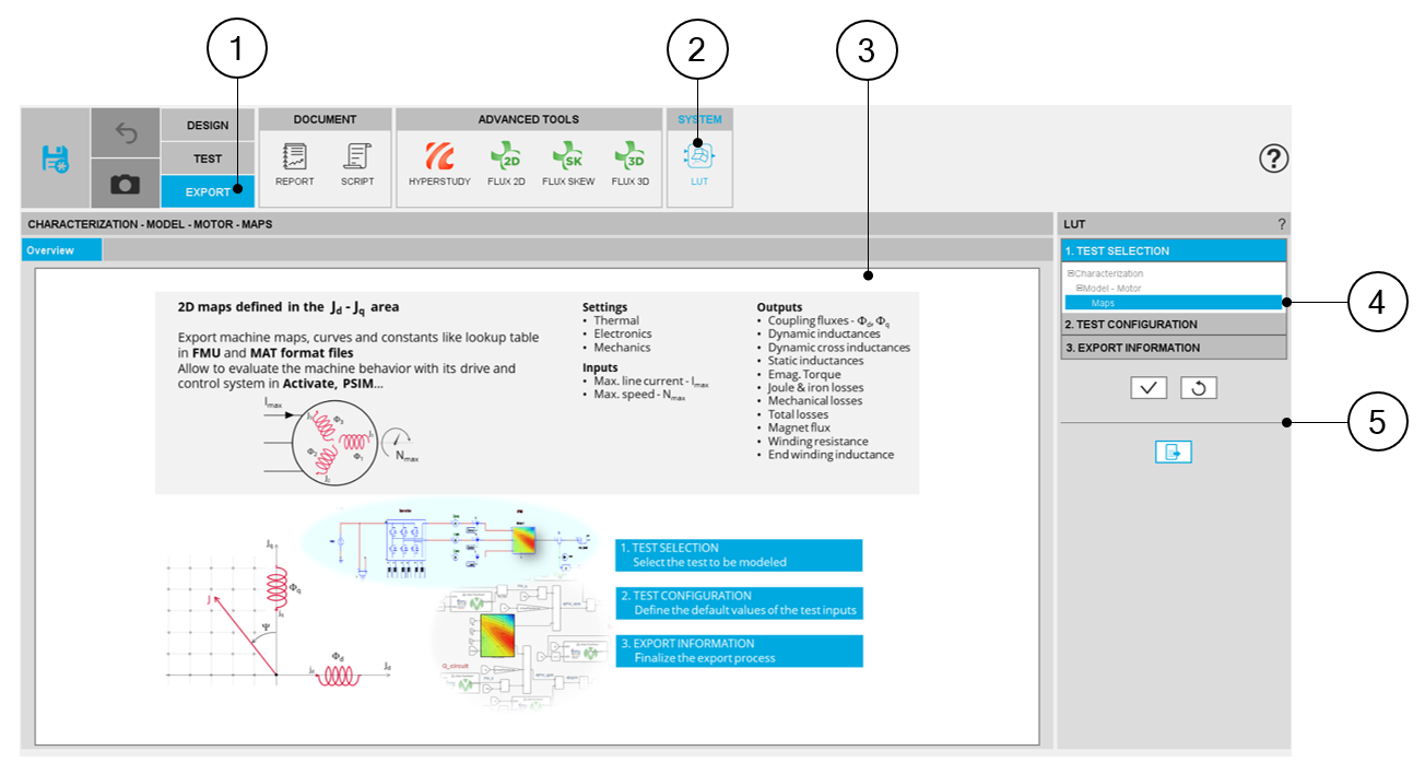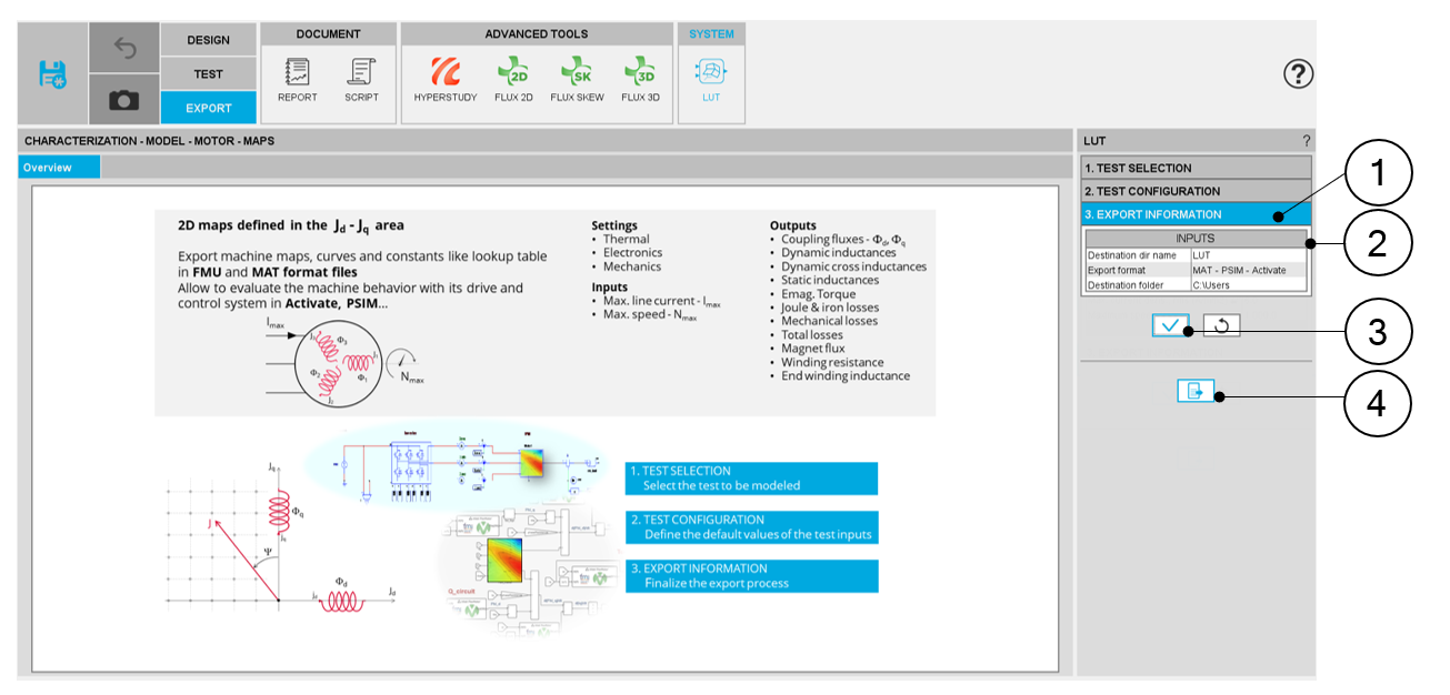 Export / System LUT (Activate or PSIM) allows exporting data with respect to the rotor position dependency.