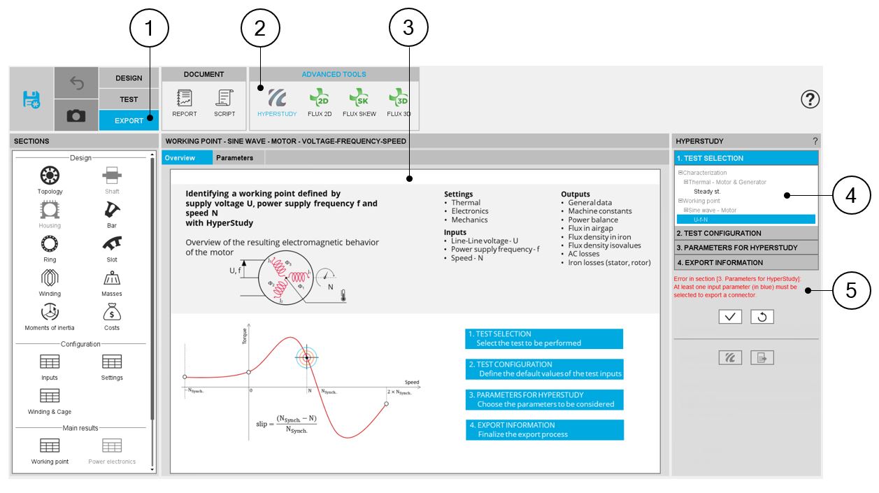 The aim of this export is to build a connector, allowing Altair® HyperStudy® to drive Altair® FluxMotor® for performing motor optimizations based on the computation processes embedded into FluxMotor®.