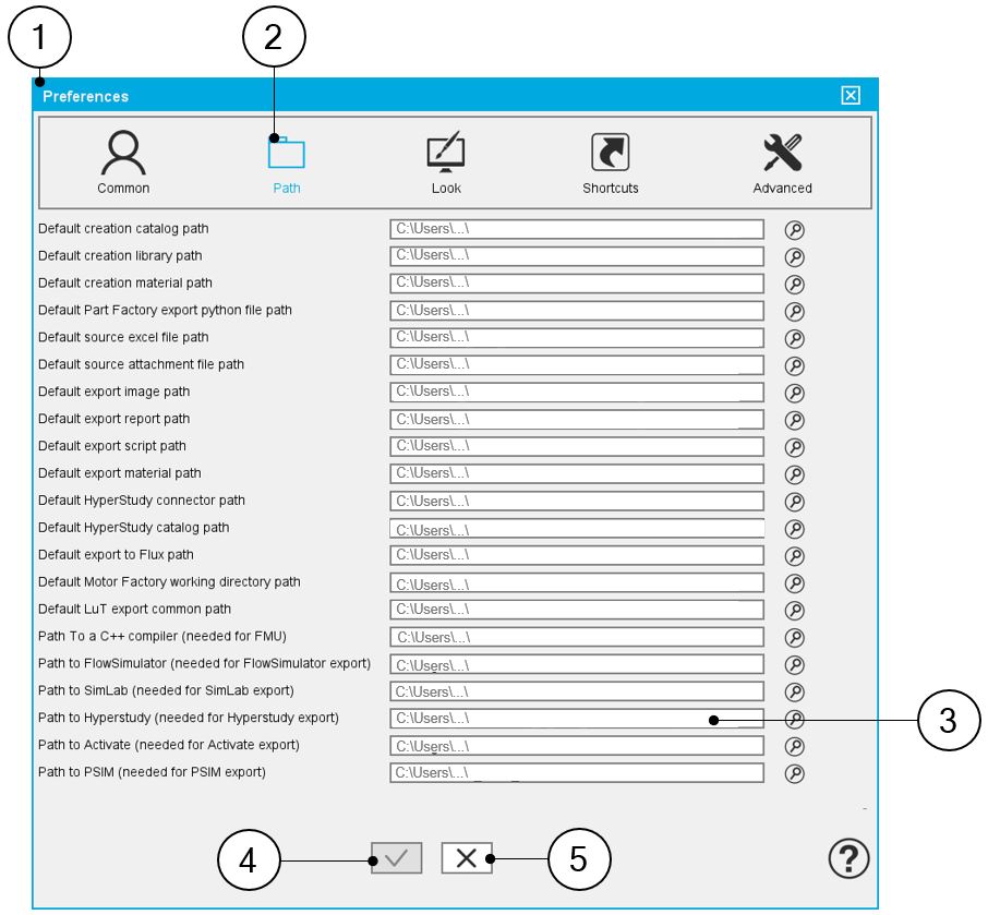 | Path to HyperStudy – Needed for HyperStudy export – It must be defined in the user preferences (Supervisor of FluxMotor) |