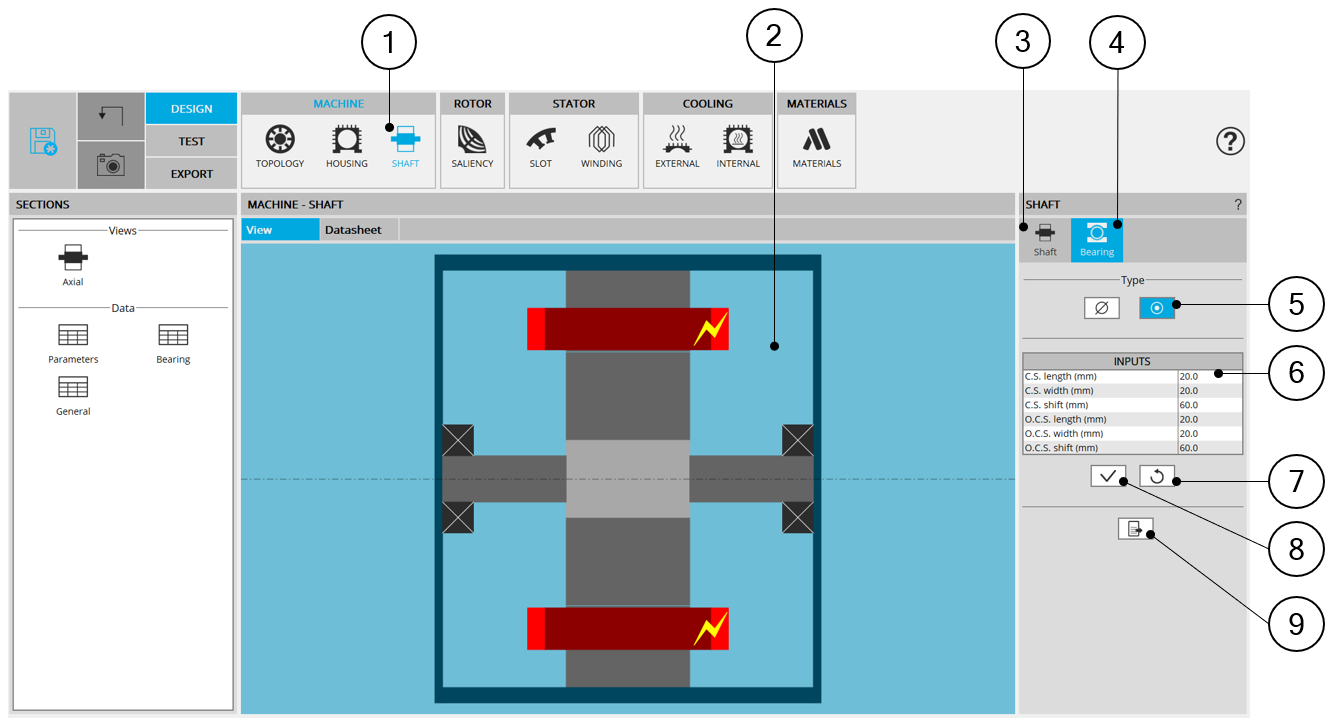 | 2 | Visualization of the motor axial view to visualize the shaft topology with bearings |