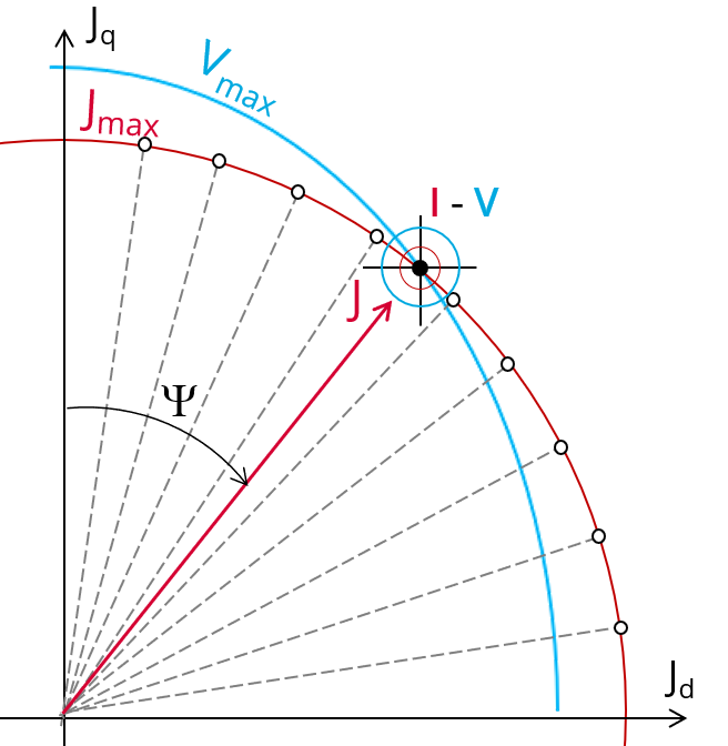 The aim of the test “Working point – Sine wave – Motor – I, U” is to characterize the behavior of the machine when operating at the working point which is targeted by the user. It corresponds to the base point at the imposed maximum line current and maximum Line-Line voltage.