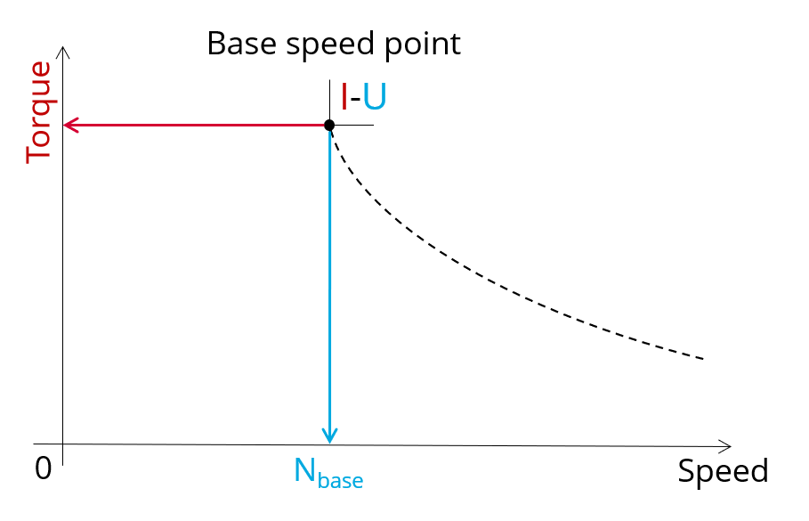 The base point of the torque-speed curve is defined by considering the targeted input values I, U (Voltage, current). Then, this test allows deducing the performance for this working point.