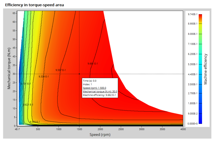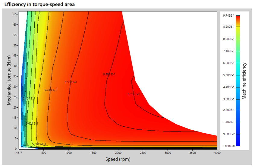 A set of curves (like Torque-Speed curve) and maps (like Efficiency map) are computed and displayed.