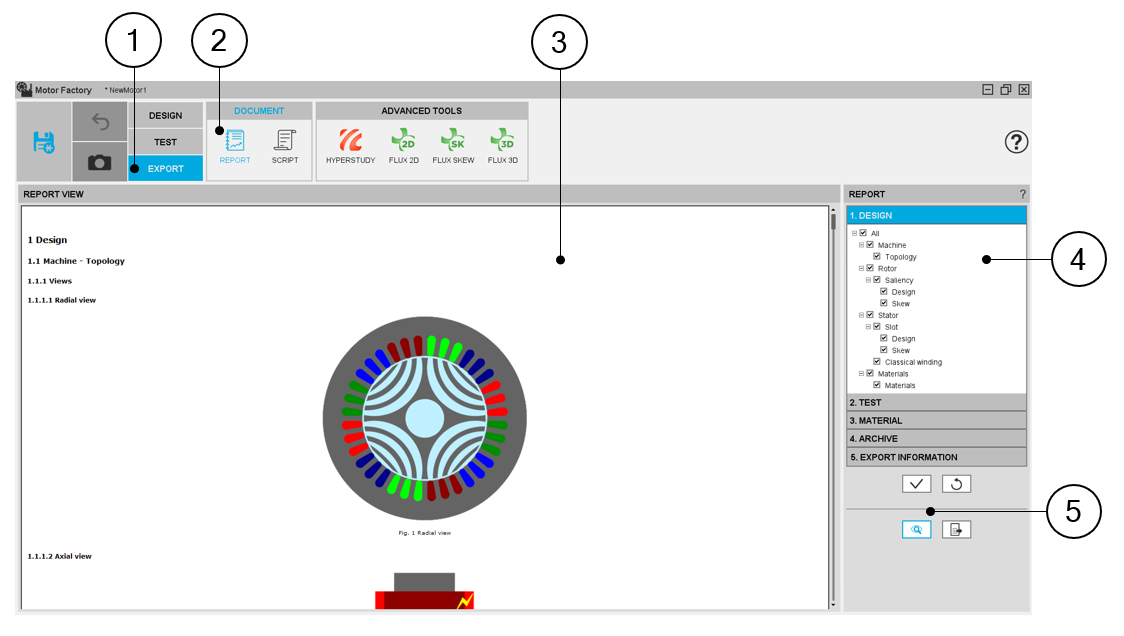 As a result, the report can be exported in a pdf or html file format. It can also be attached to the motor in the "Motor Catalog" or simply displayed in the report area.