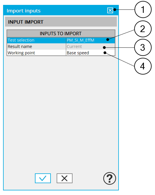 The set of inputs concerning the speed and the losses, can be imported from another test already performed in Motor Factory Test environment.