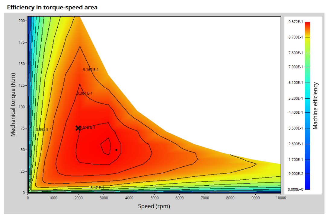 The first one allows extracting one torque-speed point from the efficiency map to get the machine performance, for this specific working point (general data + power balance).