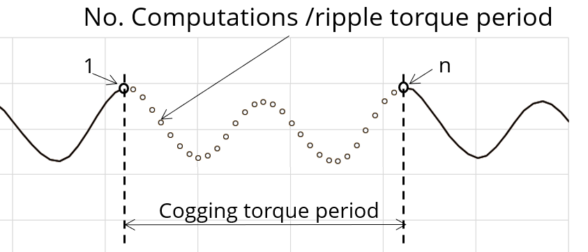 To compute peak-peak ripple torque more precisely, the user input “ No. comp. / ripple period ” (Number of computations per ripple torque period) influences the accuracy of results and the computation time.