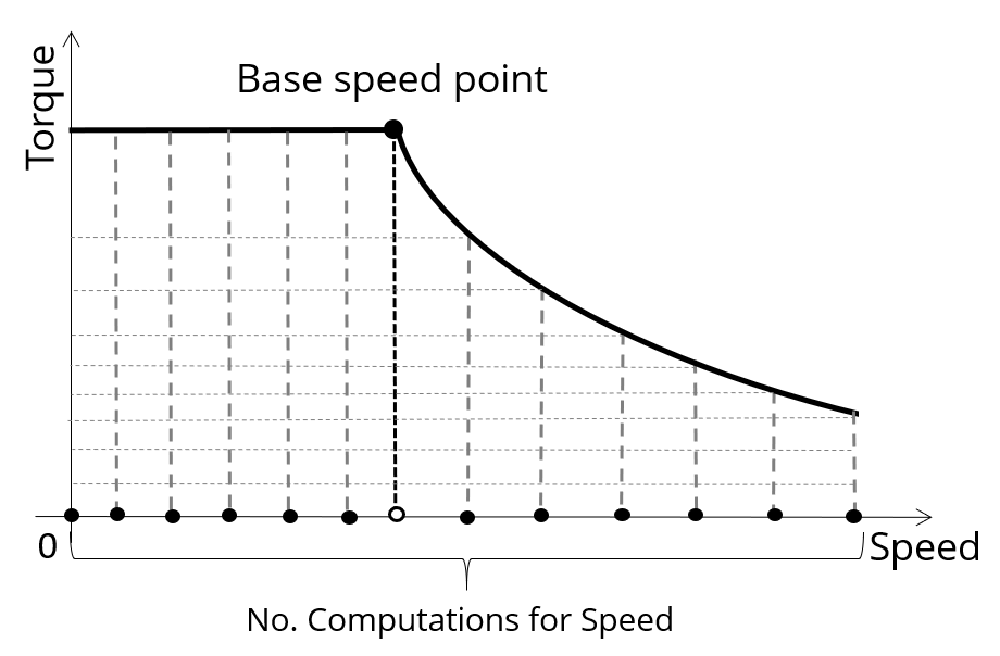 For the speed range [N base ; N max. ], the number of computations for torque is imposed by the number of computations for speed in the speed range [N base ; N max. ] (Red points in the image shown below).