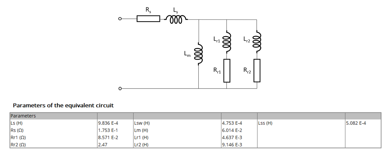 - Induction machine equivalent scheme (first and second order) with its associated computed parameters