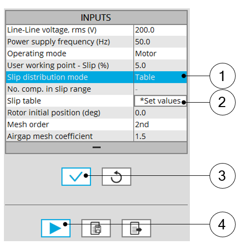 The value of the targeted slip for the user working point “User working point - Slip” ( Slip at the targeted working point ) must be provided. This value must be in the range of slip corresponding to the selected operating mode.