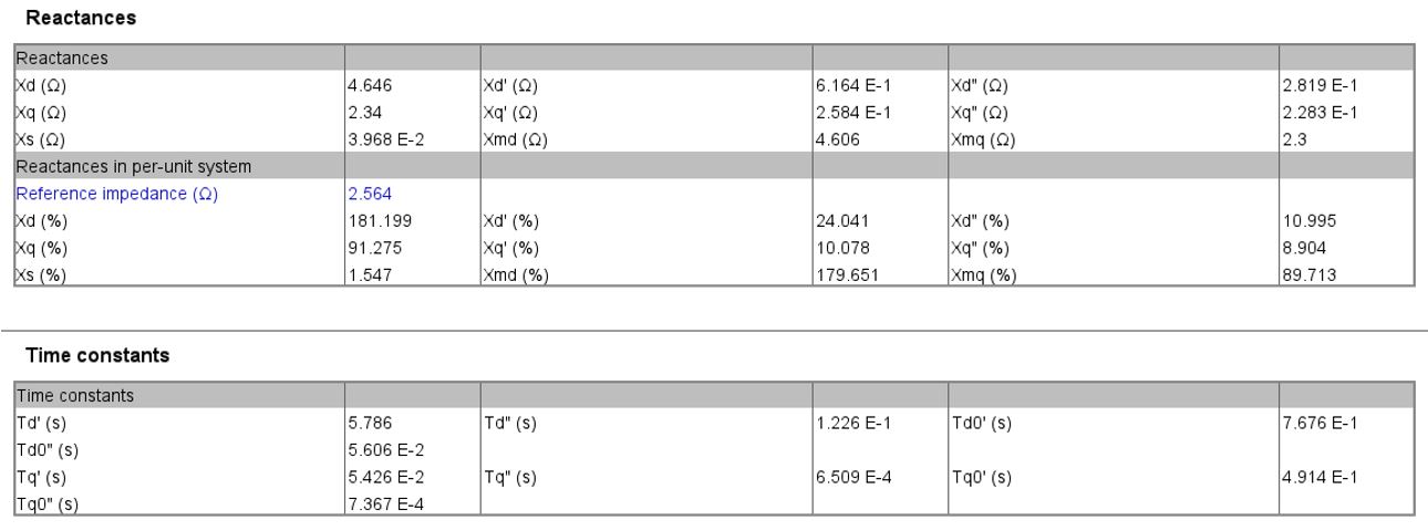 Then, the reference frequency and the reference impedance for the per-unit system computation are needed to compute the resulting machine reactances.