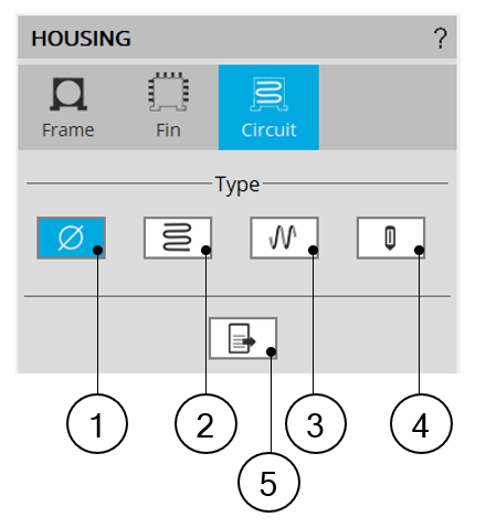 Default setting : Cooling circuit type is « None » Theres is no cooling circuit inside the housing. |