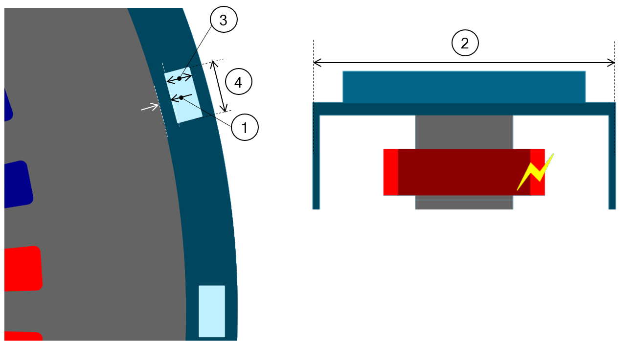 | 2 | Axial view of the motor, including the housing topology with cooling circuit topology and dimensions. |