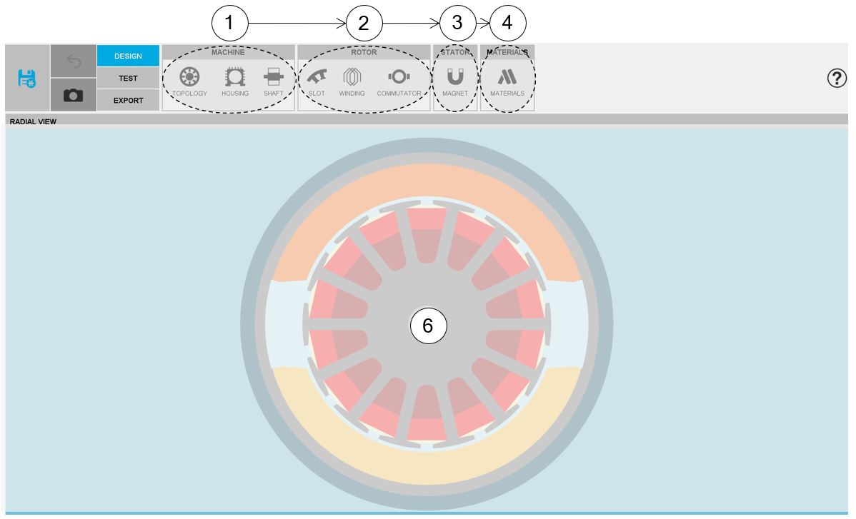 | Motor Factory – DESIGN area view – Example for reluctance synchronous machine | |