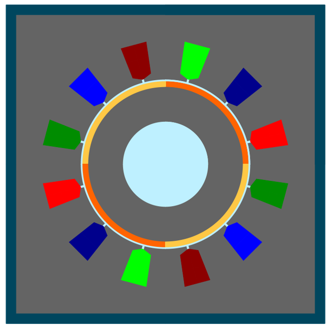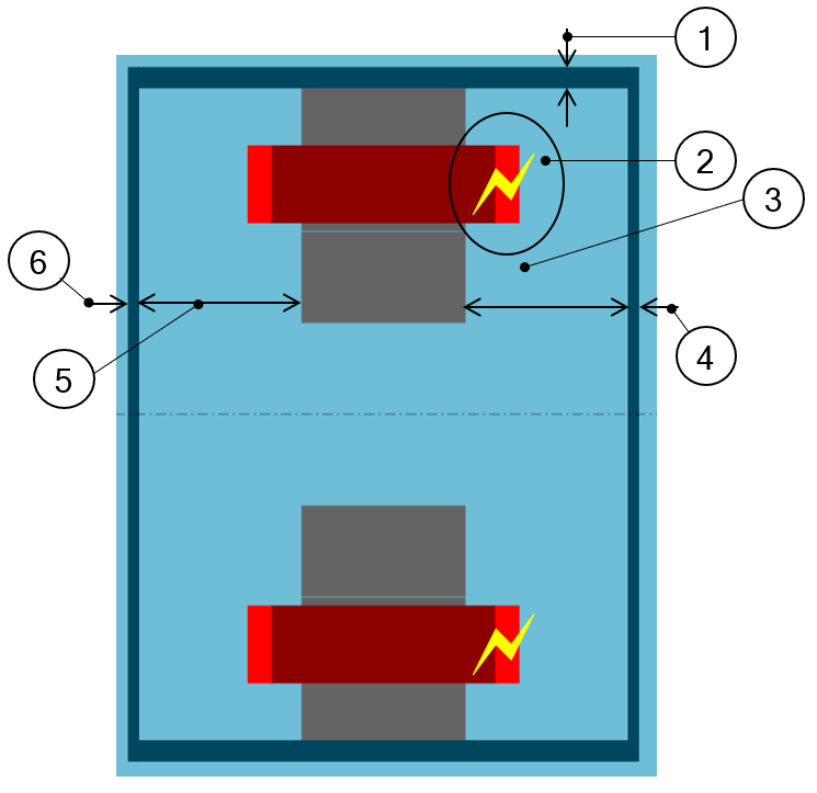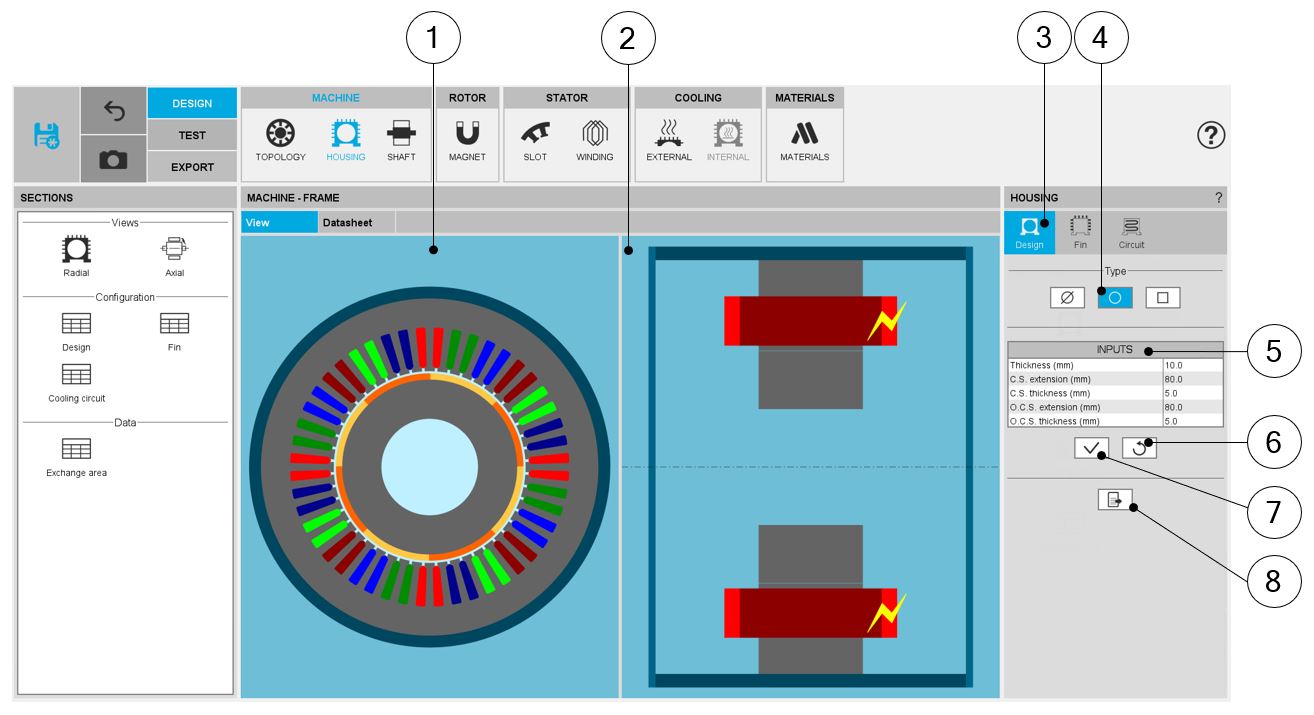 | 1 | Radial view of the motor, including the housing topology and dimensions. |