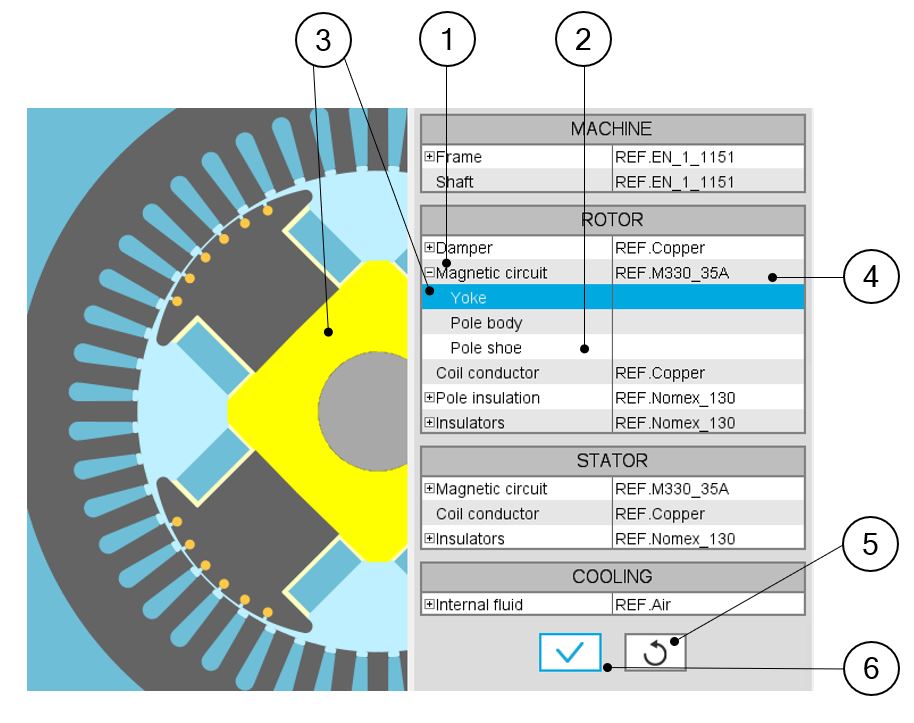| 1 | Expand the section dedicated to the magnetic circuit.Different materials (LAMINATION type or SOLID type) can be assigned to it. |